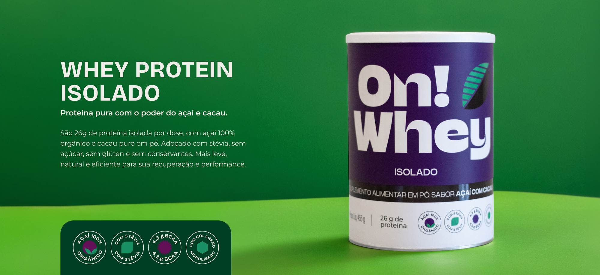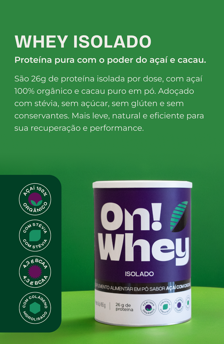 Disponível nas versões Concentrado e Isolado, combina proteína de alto valor biológico, açaí orgânico e colágeno hidrolisado para recuperação muscular, saúde das articulações e antioxidantes naturais.